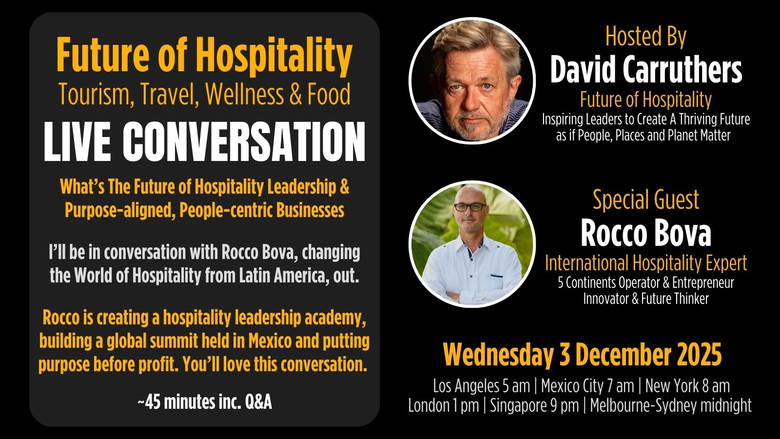 Our Future of Hospitality livestreams began in early 2022, and David has been inspiring leaders to create a thriving and regenerative future of hospitality, as if people, places and planet matter, ever since. Join us for these LIVE Chats.